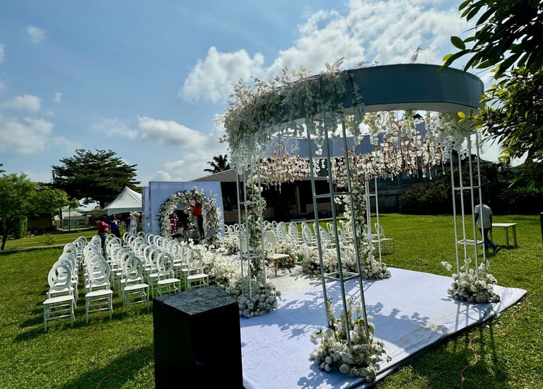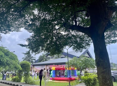 One of the only event centres in PortHarcourt with a proper garden and outdoor space. Perfect for children to run around and play on the swings.